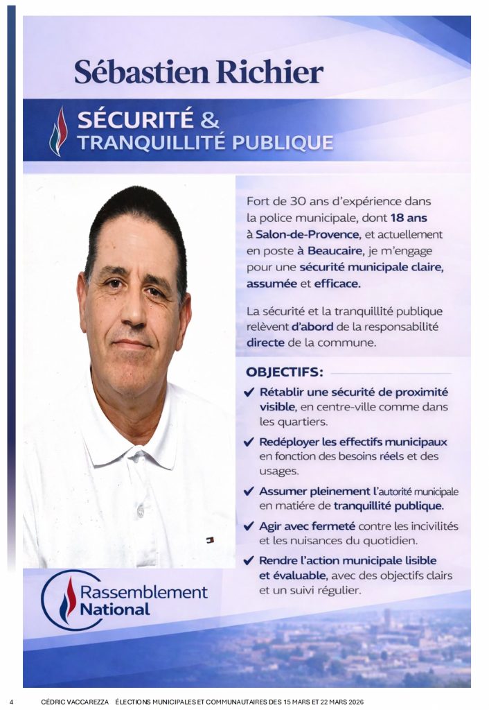 • Sébastien Richier – Policier municipal (depuis 30Ans dont 18 ans à Salon de Provence)